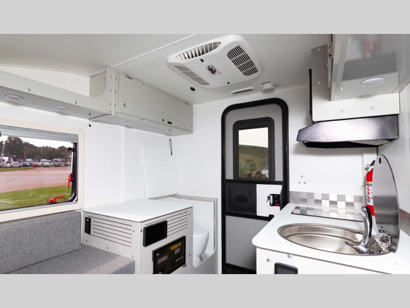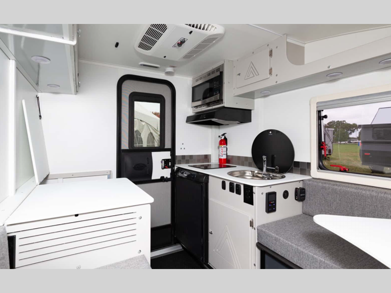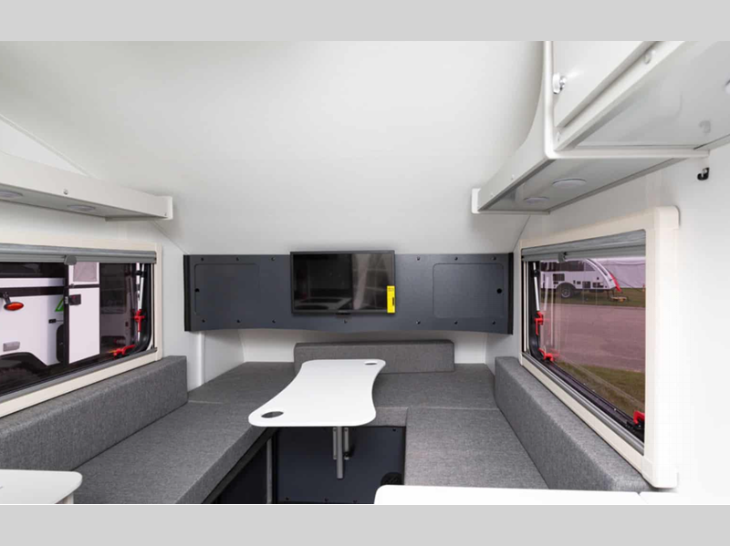 Durable construction includes a robotically welded, E-coated frame and aluminum framed cabinetry plus furniture structure with SIMONA BOATBOARD panels for added durability and water resistance. This camper is highly compatible so you could tow it with an average-size car and conveniently store in your garage. What's more, the Amp has a 30-second set up time, so you'll be ready to camp in record speed!