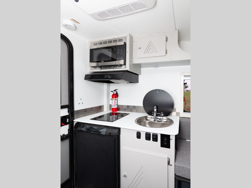 Sleeps 2 Length 14 ft Ext Width 5 ft 6 in Ext Height 8 ft Hitch Weight 225 lbs GVWR 2500 lbs Dry Weight 1900 lbs Fresh Water Capacity 11 gals Tire Size 13" Refrigerator Type 3 Way w/Freezer Refrigerator Size 3 cu ft Cooktop Burners 2 Water Heater Type Tankless On Demand Axle Count 1