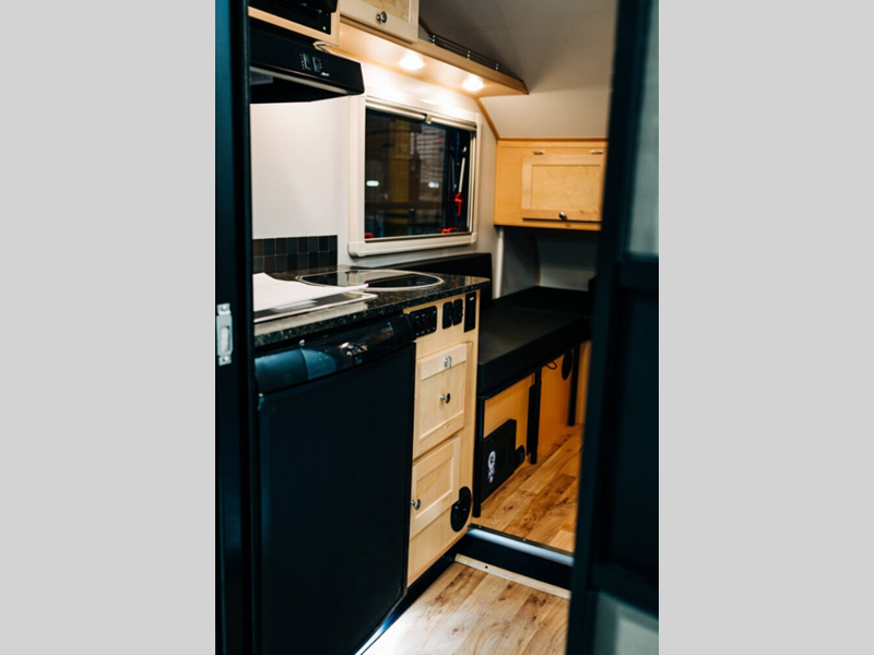 Sleeps 2 Length 14 ft Ext Width 6 ft 7 in Ext Height 8 ft 4 in Int Height 6 ft 4 in Hitch Weight 225 lbs Dry Weight 1650 lbs Cargo Capacity 750 lbs Fresh Water Capacity 11 gals Grey Water Capacity 13 gals Tire Size 13" Furnace BTU 18000 btu Refrigerator Type Two Way Refrigerator Size 3 cu ft Cooktop Burners 2 Axle Weight 2500 lbs LP Tank Capacity 40 lbs Water Heater Capacity 6 gal Water Heater Type Suburban AC BTU 9200 btu TV Info 23" Flat Screen TV Awning Info Thule Axle Count 1 Shower Type Wet/Bath Shower