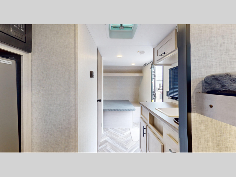 Sleeps 5 Length 21 ft 7 in Ext Height 9 ft 2 in Int Height 6 ft 3 in Hitch Weight 408 lbs Dry Weight 3080 lbs Cargo Capacity 1320 lbs Fresh Water Capacity 21 gals Grey Water Capacity 34 gals Black Water Capacity 34 gals Number Of Bunks 2 Available Beds RV Queen Refrigerator Type 12 Volt Shower Size 30" x 36" Number of Awnings 1 LP Tank Capacity 20 lbs Awning Info 8' Electric Axle Count 1 Number of LP Tanks 1 Shower Type Standard Similar Floorplans