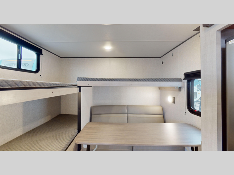 Sleeps 8 Slides 1 Length 31 ft Ext Height 10 ft 6 in Int Height 6 ft 10 in Hitch Weight 800 lbs Dry Weight 6144 lbs Cargo Capacity 1456 lbs Fresh Water Capacity 37 gals Grey Water Capacity 42 gals Black Water Capacity 42 gals Number Of Bunks 2 Available Beds RV Queen Refrigerator Type 12 Volt Refrigerator Size 10 cu ft Cooktop Burners 3 Shower Size 30" x 36" Number of Awnings 1 LP Tank Capacity 20 lbs Water Heater Type Tankless On Demand AC BTU 13500 btu Awning Info Electric Axle Count 2 Number of LP Tanks 2 Shower Type Standard Similar Floorplans